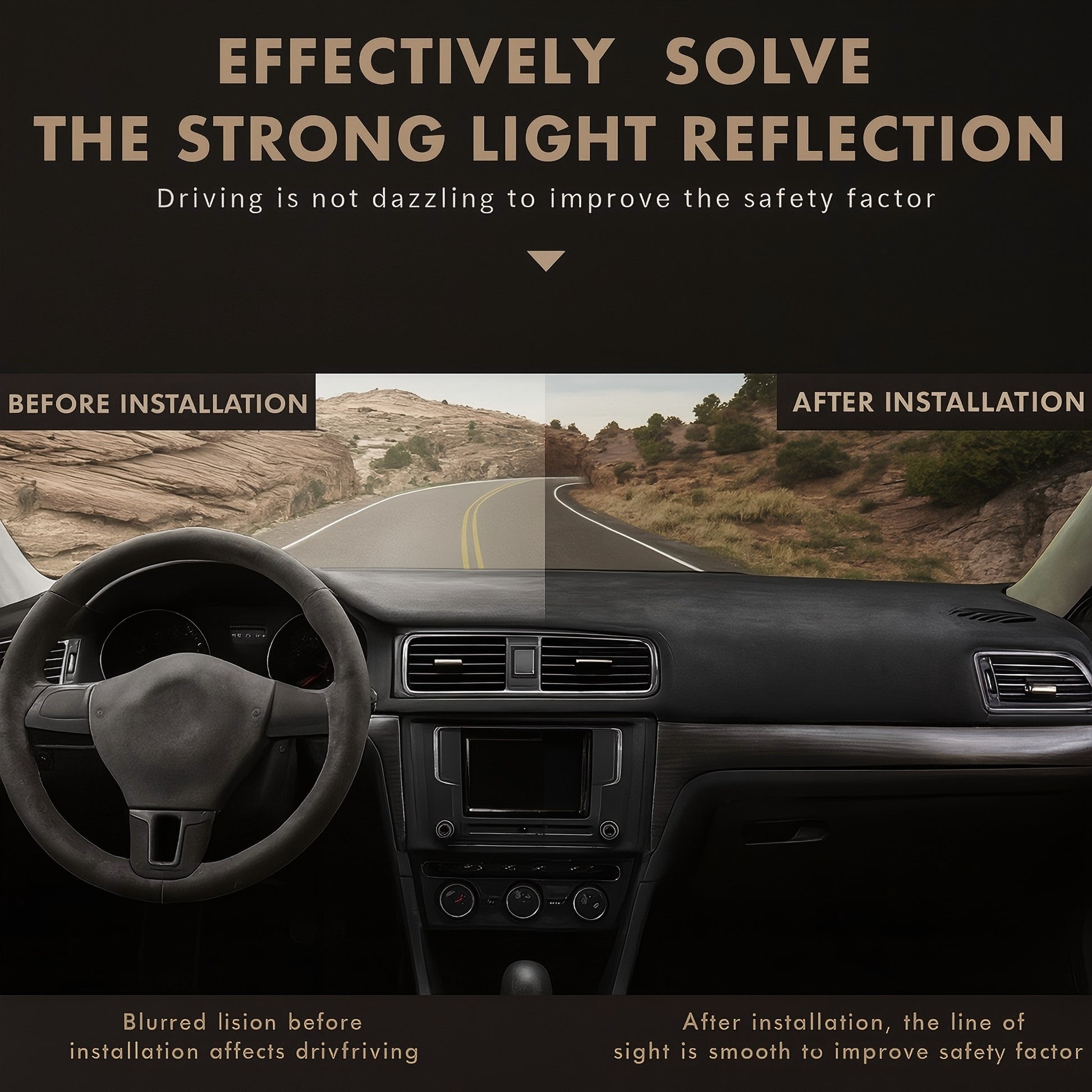 - ANTI-GLARE & SAFER DRIVING – Matte suede surface minimizes windshield glare and dashboard reflection, improving visibility for a more comfortable and secure driving experience.